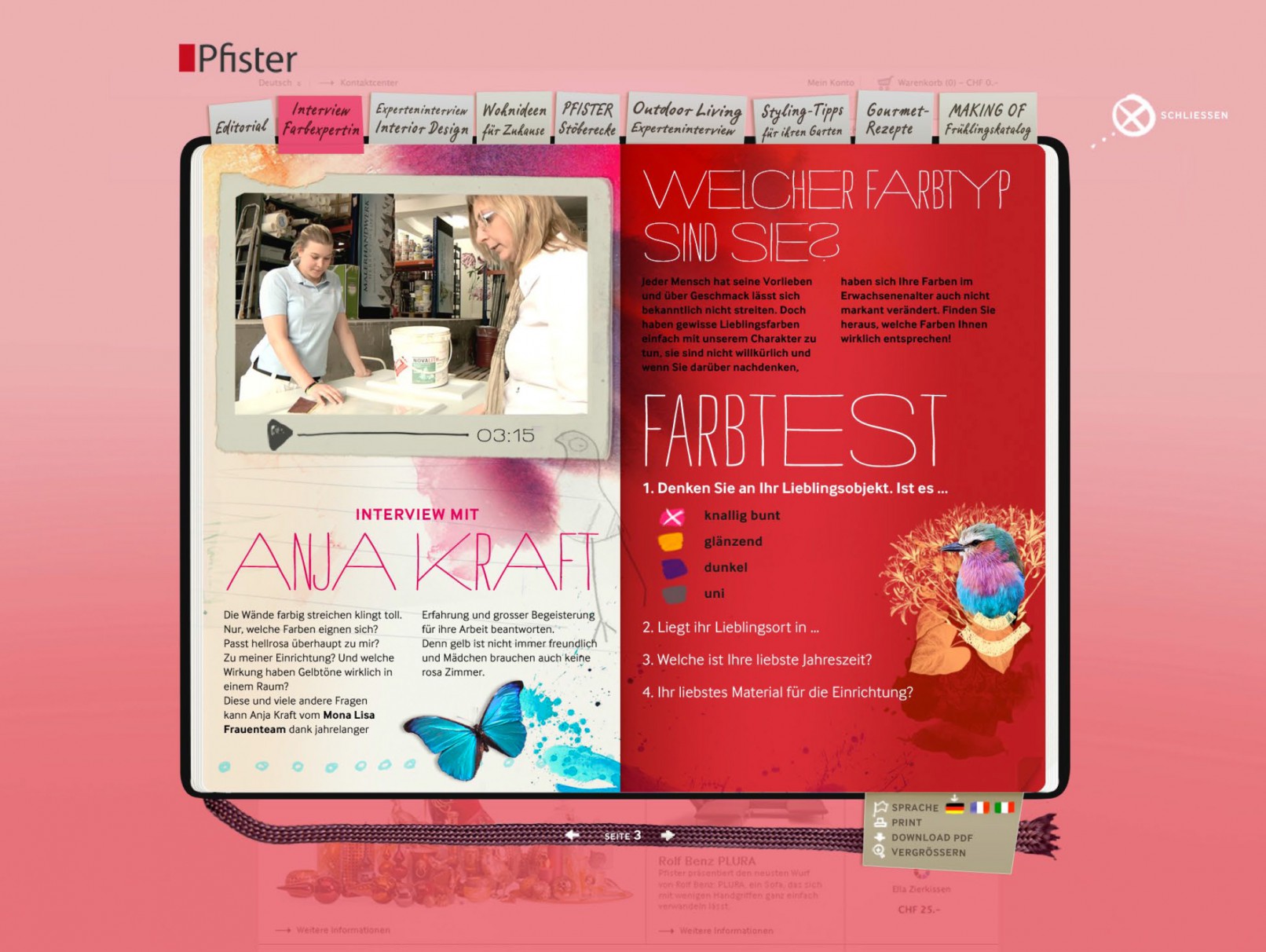 Grafische Gestaltung Onlinemagazin für Pfister (Schweiz)
